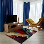 A balcony and a dressing room are equipped with a TV set, as well as an iron with ironing board for guests' ultimate comfort. Along with a sofa set, the interior features soundproof windows. Beds fitted with hypo-allergenic pillows are at guests' disposal. Offering a bathtub and a separate toilet, a bathroom comes with hair dryers and towels.